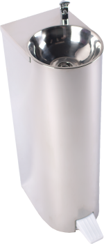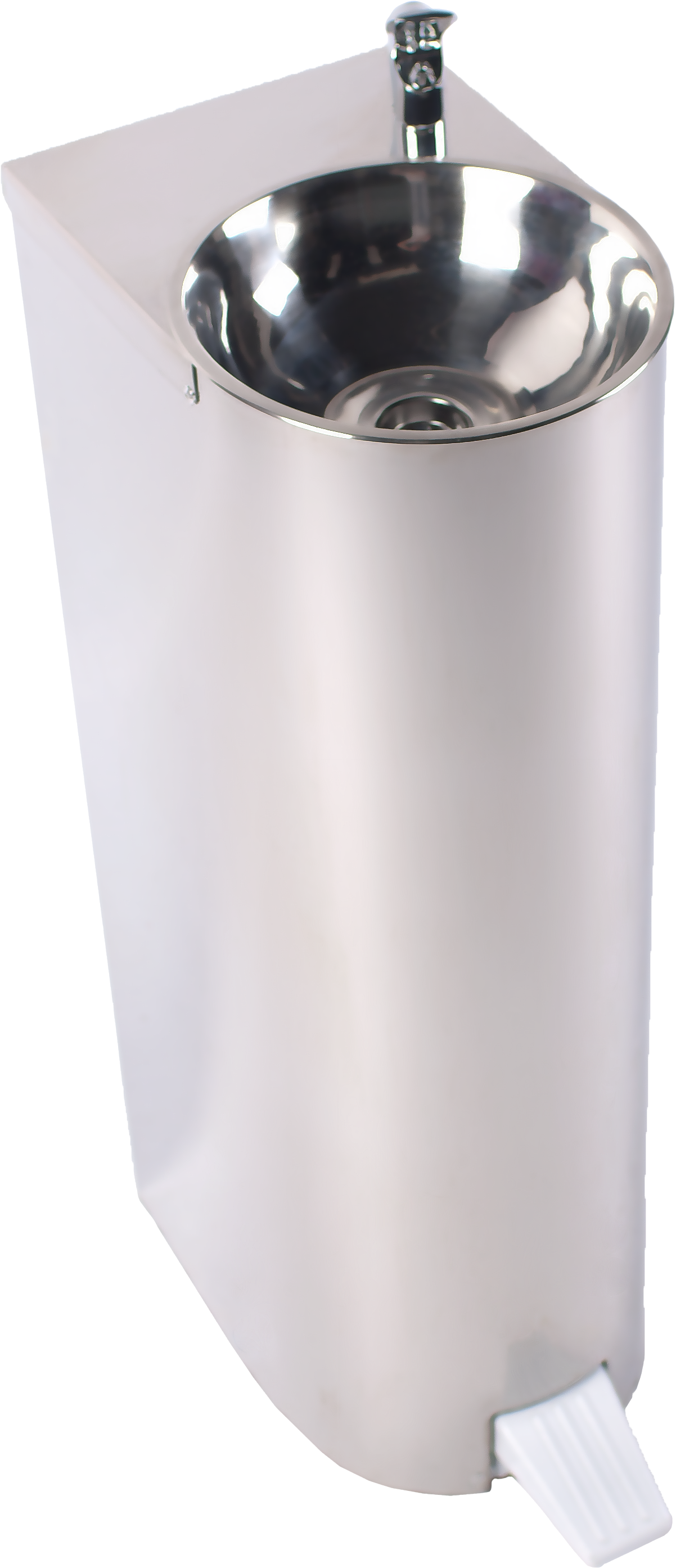 Новые питьевые фонтанчики выполненные в форме полусферы. Такая форма с одной стороны позволяет монтировать фонтанчик вплотную к стене, а с другой стороны сохраняет безопасность фонтанчика цилиндрической формы. Фонтан снабжен педальным пуском воды, что необходимо на производственных предприятиях, где руки сотрудников имеют высокую степень загрязнения.